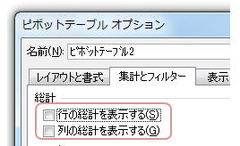 「集計とフィルター」タブで「行の統計を表示する」「列の統計を表示する」のチェックを外す