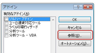 アドイン ダイアログで「参照」をクリック
