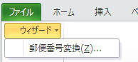 「アドイン」タブ−「ウィザード▼」−「郵便番号変換」をクリック