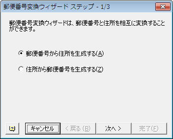 郵便番号変換ウィザードで「郵便番号」から「住所」を表示する