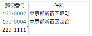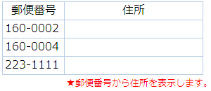 同様に「住所から郵便番号」も表示できます。(都道府県、市区町村まで入力されていない場合は正確な郵便番号が出力されません。)