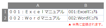 例: B列に「=JIS(A1)」と入力