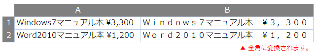 (半角が存在しない文字種(漢字やひらがな)はそのままです。)