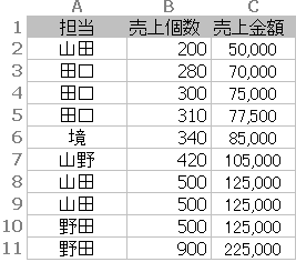 エリア(Criteria)だった場合、担当が〜で、支店は〜、という2つの条件に合致する金額の合計を算出できます。