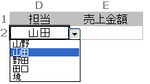 D1:D2に条件エリアを作成(フィールド名と条件用のセル。条件用のD2セルは直接入力/ドロップダウンどちらでも可)