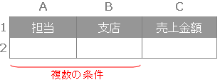 ※ 条件は、条件用の領域に【フィールド名】と【条件】を入力します。