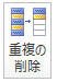 「データ」タブ−「重複の削除」ボタンをクリック