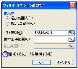 「重複するレコードは無視する」にチェックを入れて「OK」をクリック