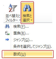 範囲選択したまま「ホーム」タブ−「検索と選択」から「数式」を選択