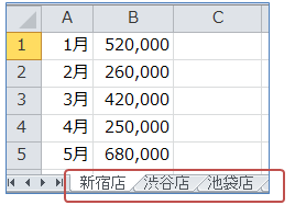 例「新宿店」「渋谷店」「池袋店」の各シートをVLOOKUPで参照したい