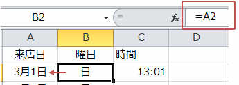 し★1(表示形式で曜日表示)、文字なら数値に変換する ★2