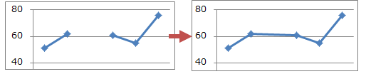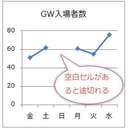 折れ線グラフでは元データに空白セルがあると途切れてしまいます。