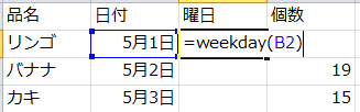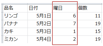 Weekday関数はシリアル値を1~7の曜日を表す数値に変換します。これにより同じ曜日は同じ数値となり、グループ化が可能になります。
