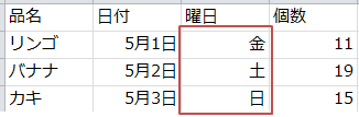曜日が表示されます(セルに格納されているのはWeekday関数により返された1~7の数値)▼▼