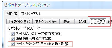 → 今後、ファイルを開く時にピボットテーブルが自動更新されます。