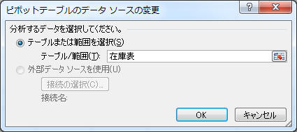 オプション」タブ−「データソースの変更」をクリック