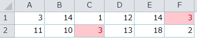 下図では、C2とF1に自動で色が付けられるようにします。 自動で色を付けたいセル範囲を選択 「ホーム」タブ−「条件付き書式」−「セルの強調表示ルール」−「指定の値に等しい」をクリック A1を指定し「OK」をクリック(=$A$1) ★書式は任意で変更可能 A1の値と同じセルに色が付きました。