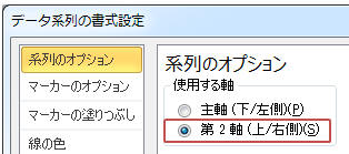 「系列のオプション」にある「第2軸(上/右側)」をクリックし「OK」をクリック