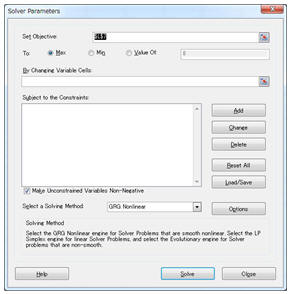 ↓アドインのメニューやダイアログが英語で表示されることがあります(★下図はソルバー)