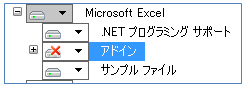 「Excel」−「アドイン」を展開し「マイコンピュータから実行」を指定し「続行」をクリック