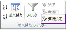 データベース内にカーソルを置き「データ」タブ−「並べ替えとフィルター」にある「詳細設定」をクリック