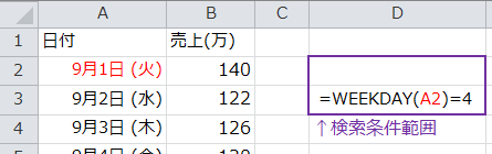 OR関数やAND関数をネストします。例:=AND(WEEKDAY(A2)=4,B2>=120,C2="男"