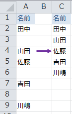 空白セルを詰めて別領域に表示 →