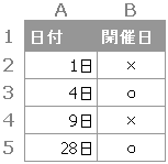 ■ 例2:開催日が奇数なら×