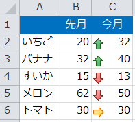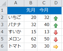 作業列に今月-先月で数値を出し、その数値に対してアイコンセットを一括設定します。