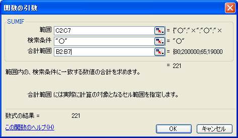 ◆ SUMIF (条件の対象範囲, 条件, 計算の範囲)