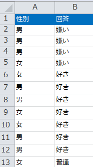 「好き」「嫌い」「どちらでもない」といった文字列によるアンケートからグラフを作ってみましょう。