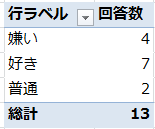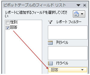 - グラフ化したいフィールド【回答】を「行ラベル」に配置する