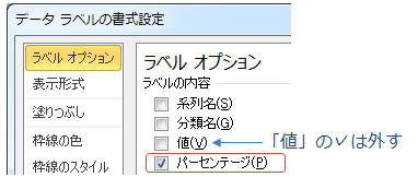 - 「ラベルオプション」にある「パーセンテージ」に✓を入れる(※値は外す)
