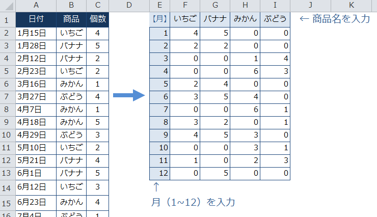 Excel2010:日付から月ごとのデータを集計したい(SUMPRODUCT、ピボットテーブル、配列数式) |