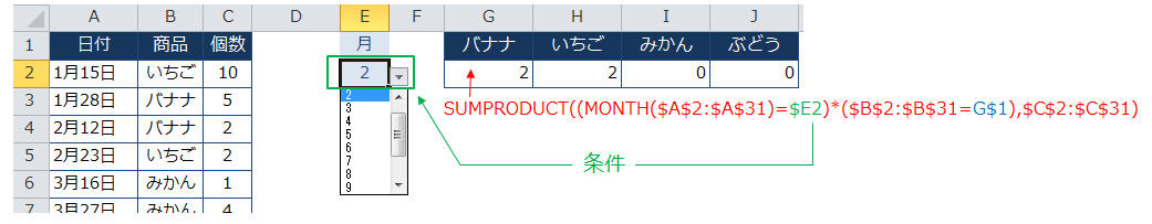 ◆ ドロップダウンリストで条件月を選択し、抽出する場合は