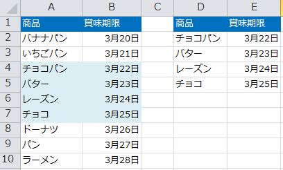 ■ 賞味期限の3日前のデータを別領域に表示