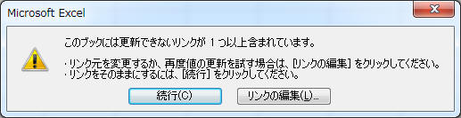 Excel2010「このブックには更新できないリンクが1つ以上含まれています」が表示される場合の対処法 |