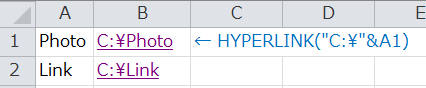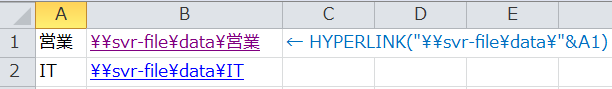 =HYPERLINK("\\パス\"&A1)