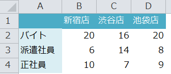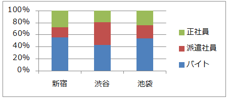 例:各店舗の従業員の種別割合(バイト・派遣・正社員)を検証する