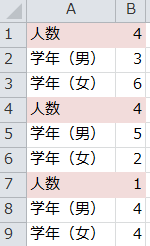 。今回人数は3行のうち1番目の行(1,4,7…行目)なので必ず1になる。
