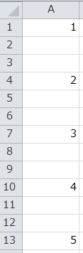 3行ごとに連番なので、1,4,7,10行目に1,2,3,4…と入力したい場合です。3で割
