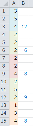 合計の最初のセル(B3)にRow(a3)÷3の除数が0なら、そのセルを起点として-3分を合計する