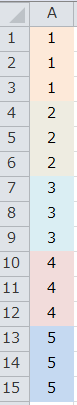 IF(MOD(ROW(A3)/3,1)=0,ROW(A3)/3,"")