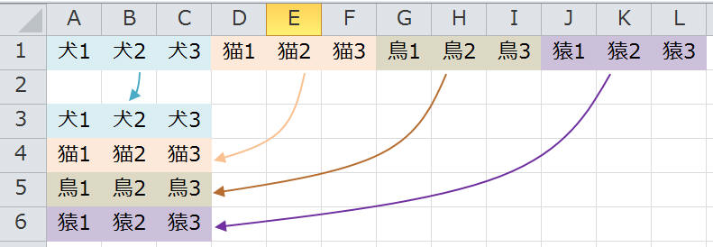 ■ 横3列ずつのデータを縦に置き換える
