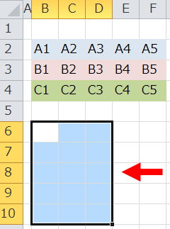 配置先のセルを範囲選択する(★ 注!元データが5列3行なら、3行5列選択)