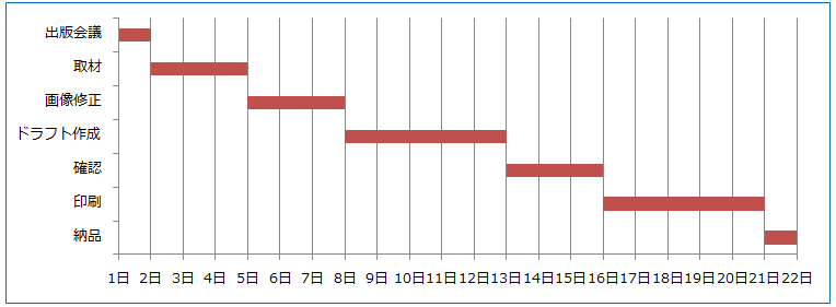 系列1(開始日)が塗りつぶしなしになりガントチャートが作成できました↓↓