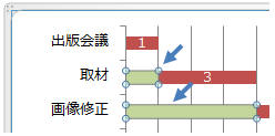 グラフの開始日系列をクリック(又はグラフを選択し「書式」タブー「系列”開始日”」をクリック)