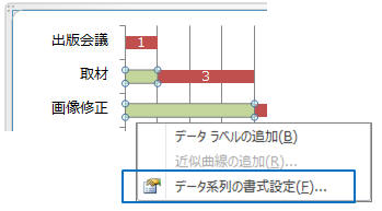 開始日系列が選択された状態で右クリックし「データ系列の書式設定」をクリック