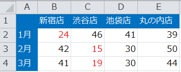 ↓↓↓行単位で一括して最小値に色がつきました↓↓↓