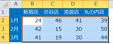 「一括して行ごとの最小値に色を付けたい」というお問い合わせをいただきました。一括して行単位で条件付き書式を設定してみましょう。